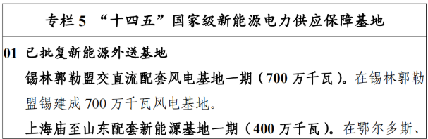 “十四五” 期間,規(guī)劃新增新能源外送基地 2900 萬千瓦,力爭累計投產 3900 萬千瓦。力爭2025 年前推動開工配套新能源基地 1000 萬千瓦。具體如下。