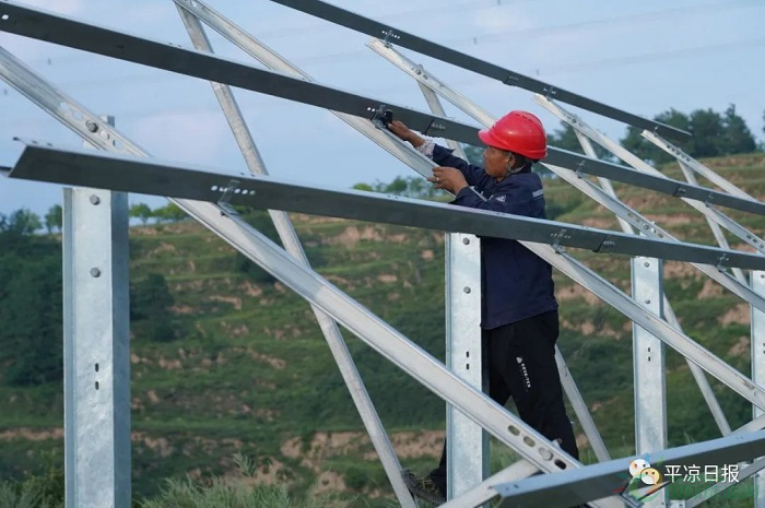8月3日,記者在崆峒區(qū)大寨鄉(xiāng)清源平?jīng)鲠轻紖^(qū)150兆瓦農(nóng)光互補光伏發(fā)電項目建設(shè)現(xiàn)場看到,工人們正頂著烈日,在山臺地上安裝固定支架。項目開發(fā)經(jīng)理蘆辰哲介紹,再有五六天就可以安裝太陽能光伏板,完成組件安裝。
