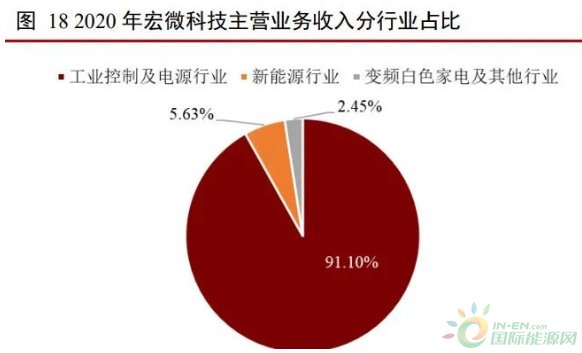 宏微科技是國內(nèi)首批 IGBT 公司。公司成立于 2006 年 8 月,主要產(chǎn)品包括 IGBT、 FRED 芯片、單管和模塊。公司 IGBT 單管芯片全部來自自研,模塊產(chǎn)品芯片自研外購 并舉。公司產(chǎn)品主要用于工業(yè)控制、新能源和變頻白色家電領(lǐng)域,2020 年收入占比分別 為 91.10%、5.63%以及 2.45%。