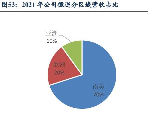 巴西為公司微逆主要市場。從公司的銷售商分布來看,德業(yè)主要市場為巴西、南非、 土耳其、波蘭等國,截止 2021 年 12 月公司在全球中銷售商數(shù)量為 83 家,其中巴西的 銷售商達(dá) 29 家。從營收分區(qū)域占比看,2021 年南美市場收入占比達(dá) 70%,其次是歐洲, 占比約 20%,亞洲約 10%,巴西是公司微逆業(yè)務(wù)的最大市場。
