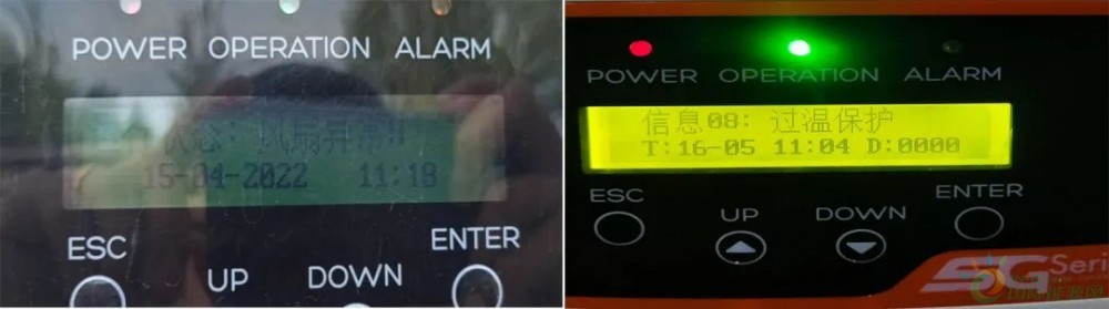 圖3:風(fēng)扇故障導(dǎo)致逆變器顯示風(fēng)扇異常及過溫保護報警
