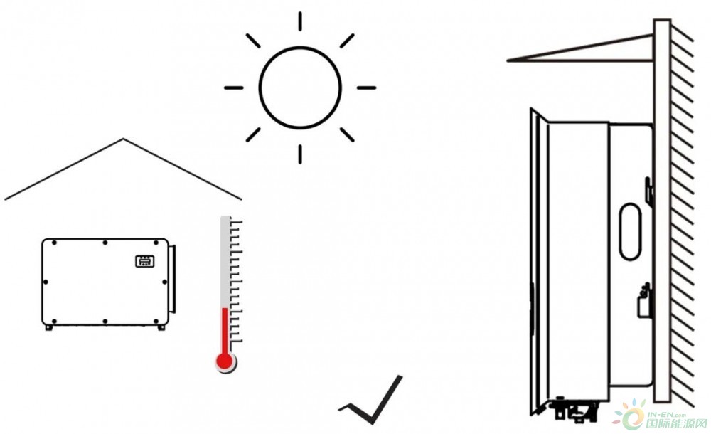 當(dāng)然更好的方法是為逆變器增設(shè)遮陽板等外部設(shè)施,不但可以防止泥土或枯枝落葉堵塞散熱通道和風(fēng)扇,同時也可遮擋陽光直射降低逆變器溫升。