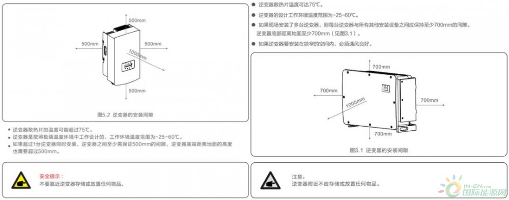 圖5:逆變器安裝距離,參考說明書