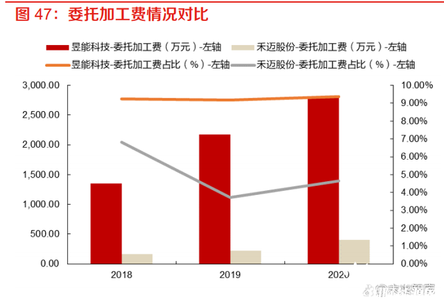 禾邁在微逆行業(yè)整體盈利能力處于較高水平,主要體現(xiàn)在: 1)生產(chǎn)模式:昱能科技與 Enphase 生產(chǎn)均通過(guò)委托加工模式進(jìn)行,而禾邁股份的微型逆變器生 產(chǎn)中組裝、灌膠等環(huán)節(jié)采用自產(chǎn)方式進(jìn)行,因此在生產(chǎn)環(huán)節(jié)產(chǎn)品成本相對(duì)較低。以昱能為例,其 加工費(fèi)占公司總成本的 10%左右,而禾邁基本全部自產(chǎn),相關(guān)成本項(xiàng)獲得較好控制;2018-2020 年度昱能剔除配件以后的微型逆變器單位成本分別為 589.72 元/臺(tái)、695.11 元/臺(tái)和 744.79 元/臺(tái), 禾邁股份剔除配件以后的微型逆變器單位成本分別為 528.44 元/臺(tái)、531.75 元/臺(tái)和 455.09 元/臺(tái)。