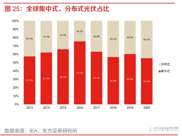 分布式占比:全球光伏裝機(jī)增長(zhǎng),分布式光伏占比有望持續(xù)提升
