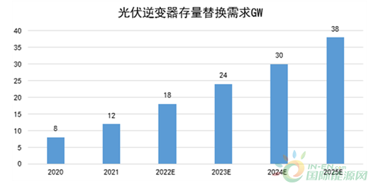 新增光伏逆變器方面,2021年全球光伏新增裝機(jī)170GW,預(yù)計(jì)2025年全球光伏新增裝機(jī)有望達(dá)到300GW,預(yù)計(jì)2025年光伏逆變器新增需求加替換需求共338GW。