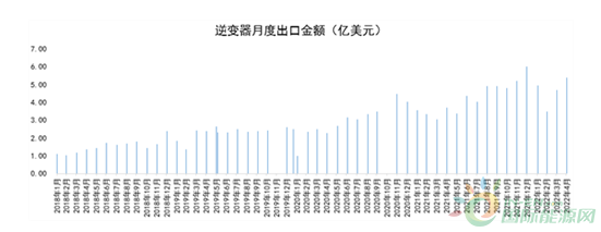 從近期出口數(shù)據(jù)看,4月逆變器出口5.4億美元,同比增長(zhǎng)45.17%;截止到4月累計(jì)出口金額18.53億美元,累計(jì)同比增長(zhǎng)35.35%。