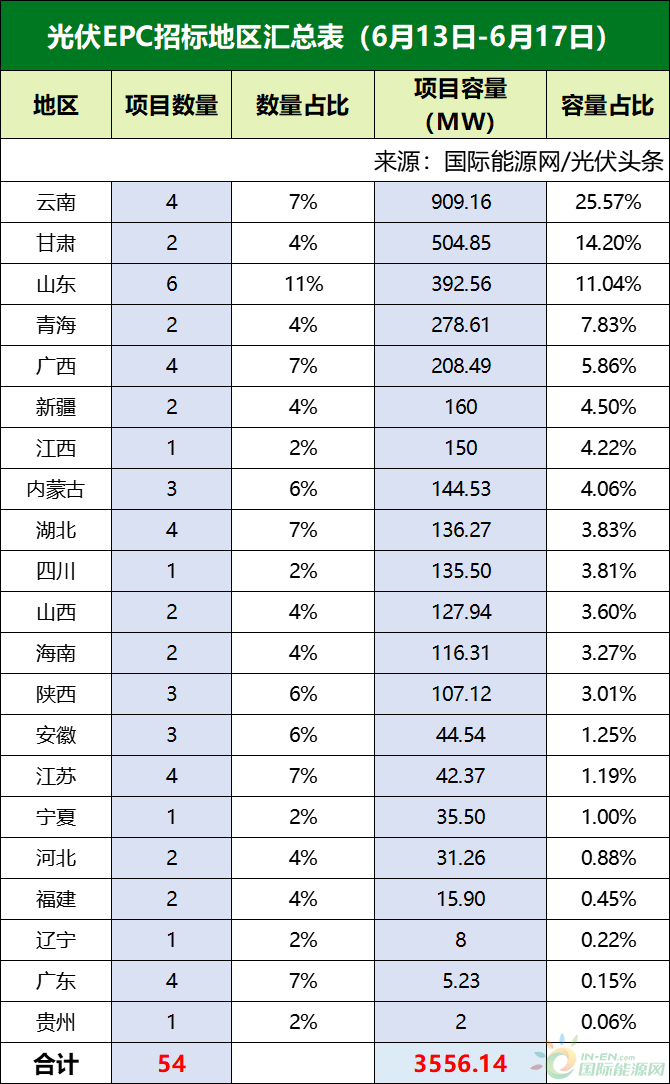 國(guó)際能源網(wǎng)/光伏頭條(PV-2005)對(duì)6月第3周(6月13日-6月17日)光伏EPC招/中標(biāo)項(xiàng)目不完全統(tǒng)計(jì),本周招標(biāo)規(guī)模合計(jì)3556.14MW,中標(biāo)規(guī)模3017.34MW,招中標(biāo)規(guī)模合計(jì)6573.48MW。此外,本周多晶硅、電池片紛紛上漲,組件龍頭企業(yè)加速產(chǎn)業(yè)鏈垂直一體化,同樣值得關(guān)注!