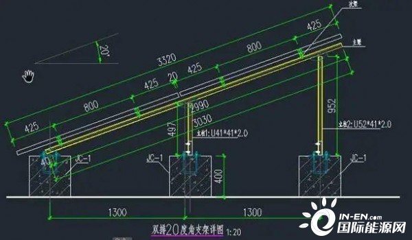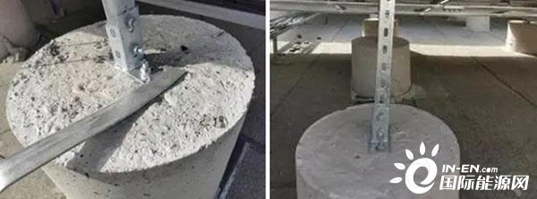 整個(gè)現(xiàn)場(chǎng)有單排10度角、雙排10或20度角、三排10度角三種安裝形式,通過抬高傾角降低組串前后排間距,方便安裝更多數(shù)量的組件。對(duì)于有坡度的屋面,還需要利用支架進(jìn)行找平。