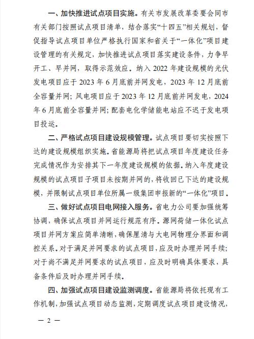 根據(jù)要求,納入2022年建設(shè)規(guī)模的光伏發(fā)電項目應(yīng)于2023年6月底前并網(wǎng)發(fā)電,2023年12月底前全容量并網(wǎng);風(fēng)電項目應(yīng)于2023年12月底前并網(wǎng)發(fā)電,2024年6月底前全容量并網(wǎng);配套電化學(xué)儲能電站應(yīng)不遲于發(fā)電項目投運。