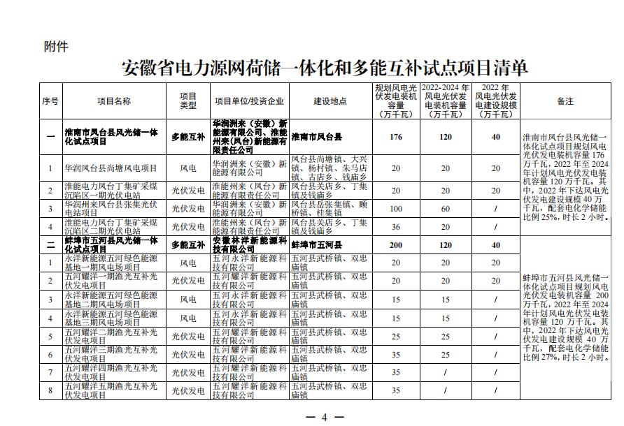 風(fēng)光規(guī)劃4.51GW、2022年建設(shè)1.16GW!安徽“一體化”試點項目清單印發(fā)