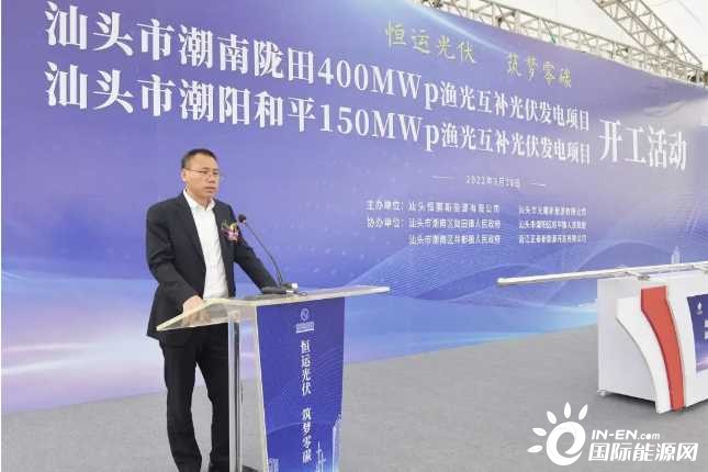 在“碳達(dá)峰、碳中和”的行業(yè)背景下,新能源產(chǎn)業(yè)迎來(lái)了重大的發(fā)展機(jī)遇?,F(xiàn)代能源集團(tuán)肖立總經(jīng)理在致辭中表示,汕頭地區(qū)發(fā)展光伏產(chǎn)業(yè)具有得天獨(dú)厚的天然優(yōu)勢(shì),隴田、和平漁光互補(bǔ)光伏發(fā)電項(xiàng)目是集團(tuán)精心謀劃的好項(xiàng)目,將助力汕頭地區(qū)加快構(gòu)建清潔低碳、安全高效的現(xiàn)代能源體系,又將助力當(dāng)?shù)貪O業(yè)增效、漁民增收、農(nóng)村增綠,推動(dòng)美麗鄉(xiāng)村再升級(jí),為區(qū)域?qū)崿F(xiàn)“雙碳目標(biāo)”做出重要貢獻(xiàn)。同時(shí)真誠(chéng)希望汕頭市、區(qū)相關(guān)政府部門(mén)、鎮(zhèn)村,項(xiàng)目合作方和參建單位繼續(xù)對(duì)項(xiàng)目建設(shè)和運(yùn)營(yíng)給予大力支持和幫助,把本項(xiàng)目建設(shè)成為新能源精品樣板工程。