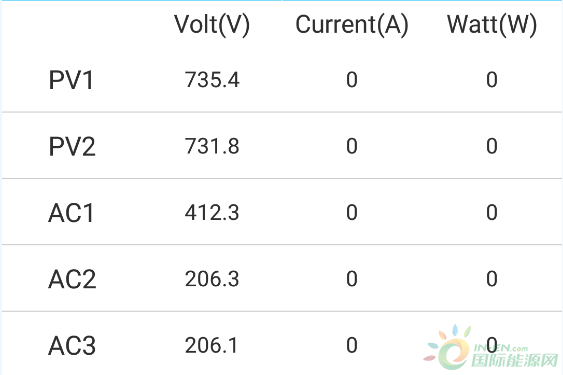 光伏并網逆變器報“交流電壓超范圍”,是最常見的一種故障,因為電網的電壓不是恒定不變的,會隨著負載和潮流的變化而變化,而逆變器的輸出電壓跟隨電網電壓,在電網異常時,需要逆變器停止供電,以免對電網造成更大的傷害。   國家標準規(guī)定,交流輸出側過電壓/欠電壓保護范圍是額定電壓的85%到110%,當超過這個標準時,逆變器要停止運行。單相并網的額定電壓是230V,當電網電壓低于195.5V或者高于253V時,逆變器原則上要停機;三相并網的電壓是400V,當電網電壓低于340V或者高于440V時,逆變器原則上要停機。   1   以下兩種情況電網電壓會偏高,一是靠近降壓變壓器的地方,為了保證離變壓器較遠的地方電壓正常,考慮到線路電壓損耗,一般都會將變壓器輸出電壓拉高;二是光伏發(fā)電用戶側無法消化,輸送到較遠的地方要提高電壓,造成逆變器輸出側電壓過高,引起逆變器保護關機。      這時有三種方法可以讓逆變器繼續(xù)運行:一是加大輸出電纜線徑,因為電纜越粗,阻抗越低;二是移動逆變器靠近并網點,電纜越短,阻抗越低;三是手動調整逆變器電壓范圍,但不能調得太高,超過270V有可能損壞用戶其它用電設備。   2   逆變器交流線如果接錯,也有可能導致逆變器報“交流電壓超范圍”故障。如相線和零線接錯,逆變器A相會顯示是線電壓380V,B,C會顯示是相電壓220V,逆變器認為電壓過低而不啟動。這種情況都是發(fā)生在逆變器安裝階段。      上圖是逆變器報交流電壓超范圍警告,從APP監(jiān)控上看到的電網各相電壓,其中AC1正常,AC2和AC3電壓偏低,經現場檢測,是相線L1和零線N線接反,把L1相線和零線N線對調換,逆變器恢復正常。   3   交流開關接觸不良或者損壞,也會導致逆變器報“交流電壓超范圍”故障。逆變器后的交流開關,由于長時間運行,如果電纜線頭沒有壓緊,或者開關質量不好,觸點就會出現比較大的內阻,有可能導致電壓下降。      上圖是一個電站報交流電壓超范圍警告,從APP監(jiān)控上看到的電網各相電壓,AC1是10.1V,AC2是126.2V,AC3是128.9V,現場測量電網電壓正常,開關也沒有斷開,只是開關溫度比較高,拆開電纜接線端子,發(fā)現接觸點變黑。重新更新電纜接頭和開關后,電壓恢復正常,逆變器也可運行。    如何檢測交流電壓故障   第一步,用萬用表檢測電網電壓,如果電壓不正常,說明是電網的問題;   第二步,檢測交流開關,正常閉合狀態(tài)下,開關上下導通,進線和出線之間是沒有電壓的,如果電壓大于5V,說明開關有問題;   第三步,如果交流開關沒問題,檢測逆變器的交流輸出接線端子,用萬用表檢測接線端子相線之間的電壓,要用電網的電壓一致,如果不一致,可能是從開關到逆變器這一段電纜有問題,或者逆變器輸出端子有問題;   第四步,如果交流輸出接線端子測得的電壓正常,逆變器還報交流電壓故障,則可能是逆變器內部采樣問題,需聯系逆變器廠家解決。