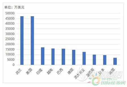據(jù)歐洲光伏協(xié)會數(shù)據(jù)顯示,2019是近年來歐盟光伏發(fā)展最好的一年,當年歐盟地區(qū)新增裝機16.7GW,增幅達到104%。根據(jù)進出口海關數(shù)據(jù)顯示,荷蘭作為中國出口歐洲的重要中轉站,占據(jù)了16%的出口份額外,2019年中國出口逆變器到德國、英國等市場均在5000萬美元以上,同時下半年波蘭、烏克蘭等市場持續(xù)發(fā)力,為中國逆變器企業(yè)出海帶來新的動能。 在國內光伏市場陷入相對低迷之時,光伏企業(yè)出海視線紛紛轉移至“南”方,東南亞的越南、馬來,南半球的澳大利亞、南非,中南美洲的墨西哥、巴西光伏市場紛紛涌現(xiàn)中國逆變器的身影,中國主流逆變器企業(yè)正一路向“南”。海外傳統(tǒng)和新興市場并進,2019年逆變器出海已漸入佳境。 2019年光伏逆變器出口金額前十國