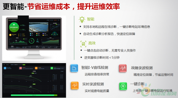 最后,以更智能化的逆變器節(jié)省運(yùn)維成本,提升運(yùn)維效率。古瑞瓦特依托逆變器的技術(shù)優(yōu)勢(shì),開(kāi)辟了智能運(yùn)維新跑道。其逆變器具有更高的智能化,可支持本地和遠(yuǎn)程在線診斷,一鍵診斷電站環(huán)境信息,自動(dòng)生成診斷分析報(bào)告,快速定位故障,診斷時(shí)間小于5分鐘。古瑞瓦特逆變器采用智能I-V曲線檢測(cè),遠(yuǎn)程排查組串異常。通過(guò)精準(zhǔn)定位故障,節(jié)省運(yùn)維時(shí)間和運(yùn)維成本,提升運(yùn)維效率。     此外,高品質(zhì)服務(wù)也是古瑞瓦特的核心優(yōu)勢(shì)之一。目前,古瑞瓦特可提供線上線下全方位的智能服務(wù)保障。線上OSS系統(tǒng)可智能分析診斷遠(yuǎn)程運(yùn)維,線上接收售后訴求,線上派工單,全程管控;古瑞瓦特線下服務(wù)部分一直致力于打造面向分散EPC客戶全面安全覆蓋及時(shí)響應(yīng)的團(tuán)隊(duì)。線下服務(wù)包括5個(gè)大區(qū)服務(wù)中心,22個(gè)省級(jí)服務(wù)網(wǎng)點(diǎn)覆蓋全國(guó),100多位經(jīng)驗(yàn)豐富的專職服務(wù)工程師,數(shù)百位授權(quán)服務(wù)工程師,30多輛售后服務(wù)車(流動(dòng)備品庫(kù)),可提供全天候、全方位、專業(yè)化服務(wù)。古瑞瓦特的服務(wù)體系也是國(guó)內(nèi)眾多EPC客戶非常認(rèn)可的服務(wù)體系,包括有全國(guó)各地的流動(dòng)服務(wù)車和實(shí)時(shí)省級(jí)服務(wù)人員及時(shí)提供響應(yīng)。      光伏扶貧樣板案例遍布全國(guó)     滴水穿石,非一日之功。古瑞瓦特多年來(lái)始終堅(jiān)守品質(zhì),注重創(chuàng)新,并將產(chǎn)品品質(zhì)與創(chuàng)新服務(wù)放在助力光伏扶貧的頭等位置。