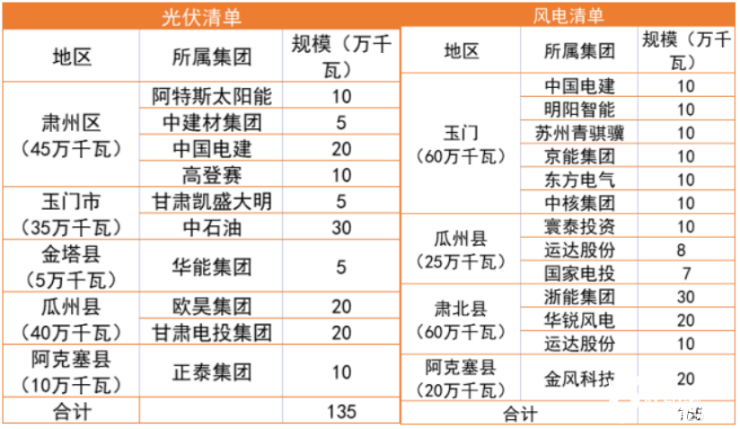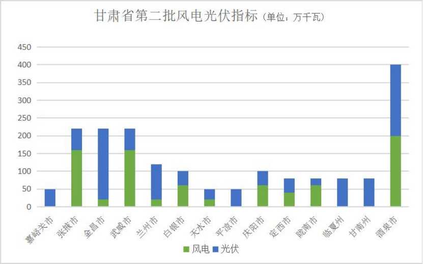 日前,酒泉市“十四五”第二批風光項目建設(shè)指標,按照風電1.65GW、光伏1.35GW以及敦煌1GW專項指標劃分,規(guī)??傆嫗?GW,光伏、風電總規(guī)模各為2GW。項目分別分布在肅州區(qū)、玉門市、金塔縣、瓜州縣、阿克塞縣等地區(qū)。
